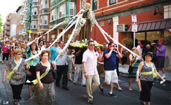 On Sunday, June 23, 2013, devotees of Saint Padre Pio held an Italian Mass and carÂried his statue from Saint Leonard Church throughout the streets of Boston’s North End. Accompanied by the North End Marching Band, this is the third year for the procession of Saint Pio, a relatively new saint canÂonized by Pope John Paul II in 2002.