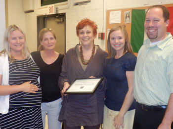 Members of RUFF were presented NEWRA’s Good Neighbor Award for their efforts in helping to keep the North End clean on a regular basis. Janet Gilardi (center) is shown presenting the community award.