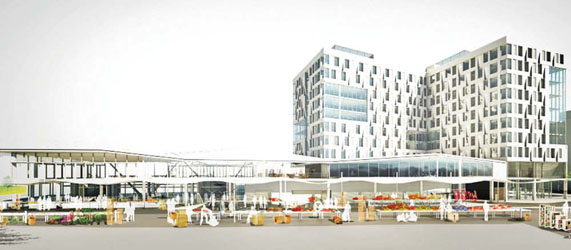 Haymarket Hotel and Market Pavilion rendering view from Blackstone Street and Haymarket vendors. (Image: Normandy / Harbinger)